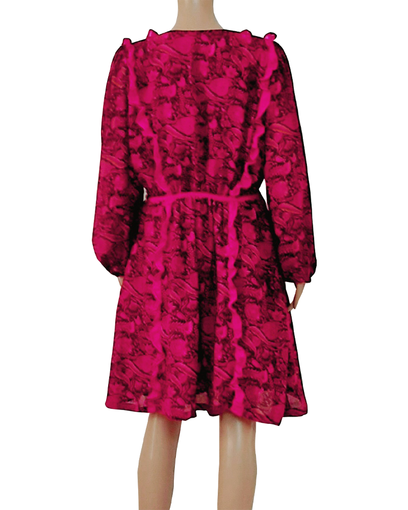Bishop sleeves. V Neck. Natural waist. Frill detailed. Short dress. In a box -1