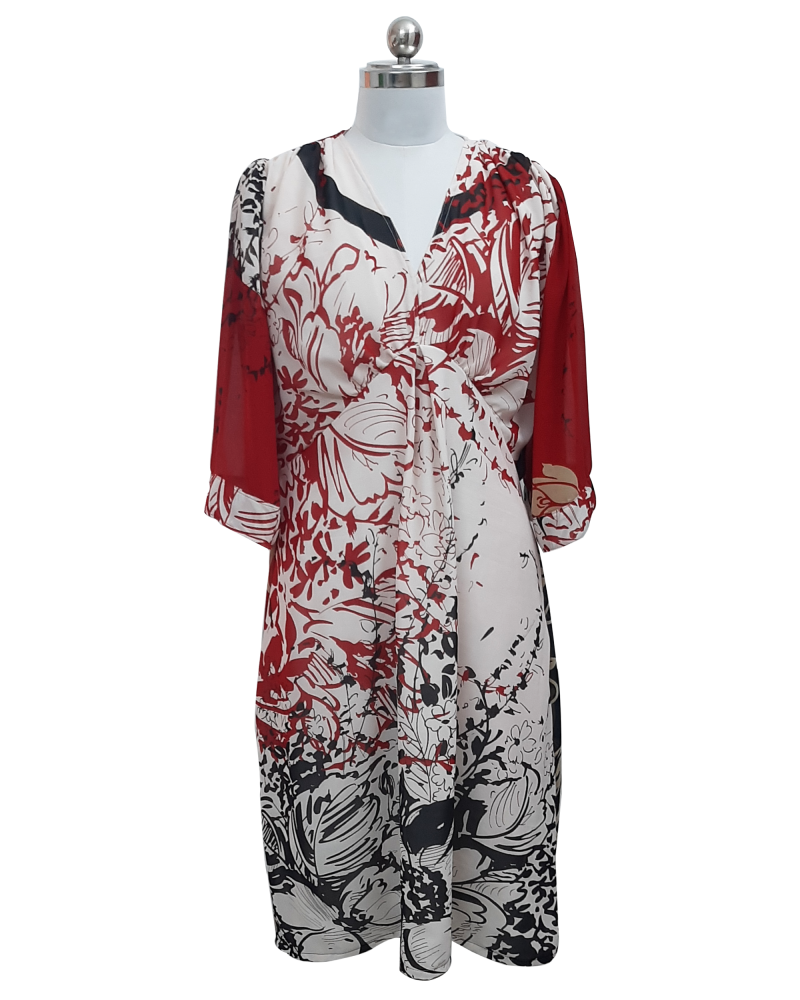 Midi dress. Elbow length Bell sleeves. Princess cut with pleats below chest. In a Box - 1